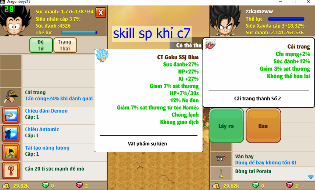 [SV2] (đã bán) Ms 4374 – Xayda 2ti1 dt 1ti7, atomic ttnl, có bông tai, ct goku ssj blue, apk 13, số 2, khỉ cấp 7, skill 77771034