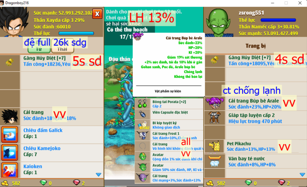 [SV2] Ms 6383 – Nameck 53ti dt 52ti (đệ full 26k sdg), LH 13%, x2 găng hd c7 5s4s, btc2 zin, csdb, giáp c2, ct arale chống lạnh, ct caulifla, frost 1, vh, tiểu đội trưởng,