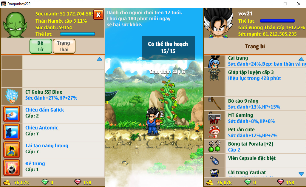 (đã bán) Ms 6401 (kèm ngọc) – Trái đất id #vov21 X2 găng hd c7 4s3s, x1 thỏ, ct goku ssj blue, hit, yadrat, csdb, yadrat, giáp c3