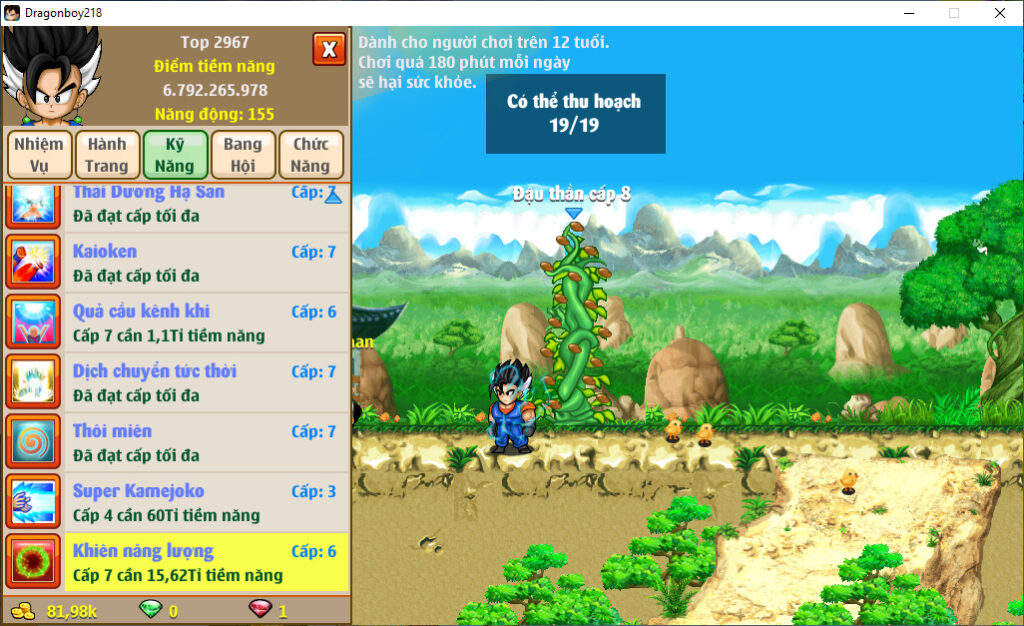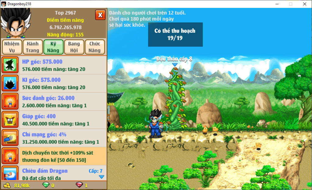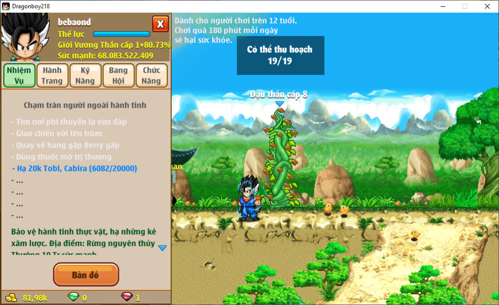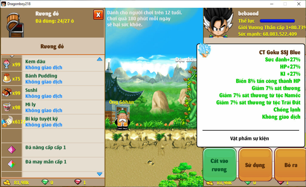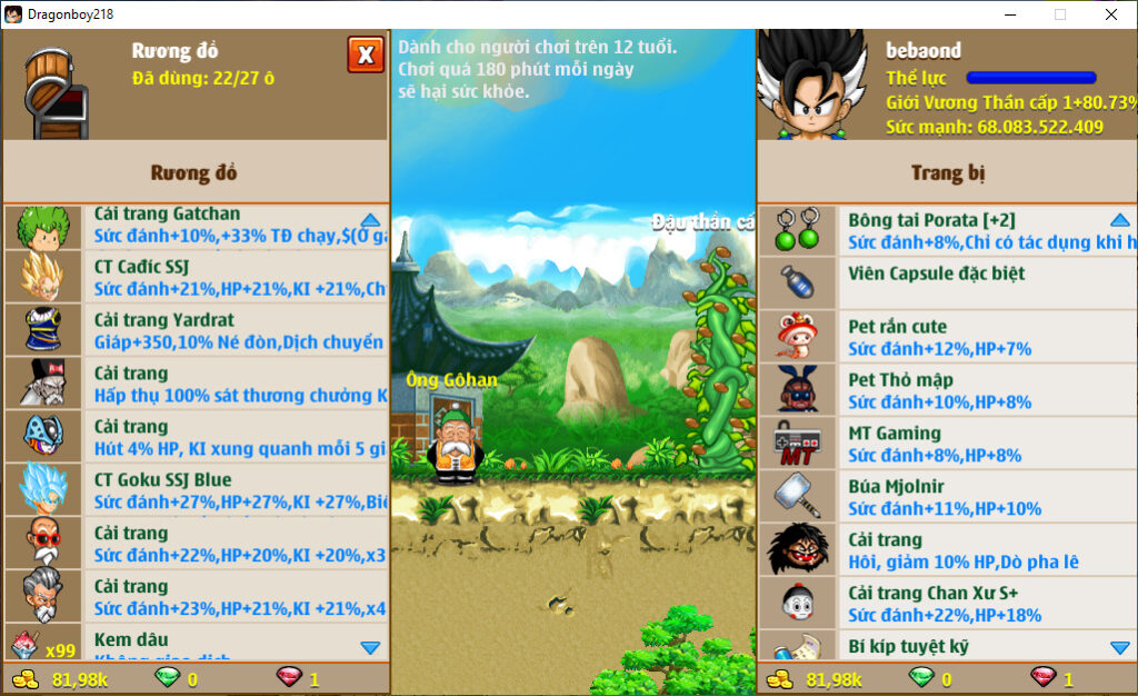[SV2] (đã bán) Ms 6521 – Trái đất 68ti dt 61ti, kame ttnl khỉ, dctt 109%, btc2 8% sd, x2 găng hd c7 5s full set hd 4s sd, x2 thỏ, ct goku ssj blue vv, ct gatchan 2 tỷ vàng, ct x3x4, phụ kiện đầy đủ,….