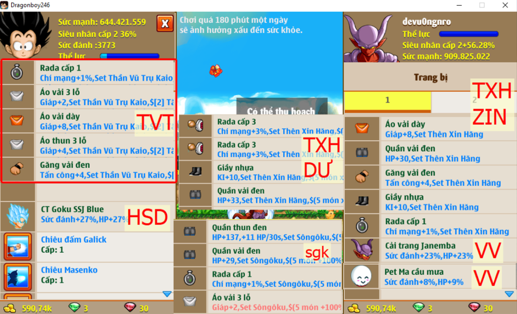 - Ms 6239 – Trái đất 57ti dt 52ti, kame tdhs trứng, btc2 zin, dctt 119%, x2 thỏ, x2 găng hd c7 4s sd, x1 w hd 3s HP, pet #pikachu, phụ kiện đầy đủ, ct goku SSJ Blue vv,