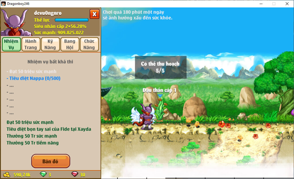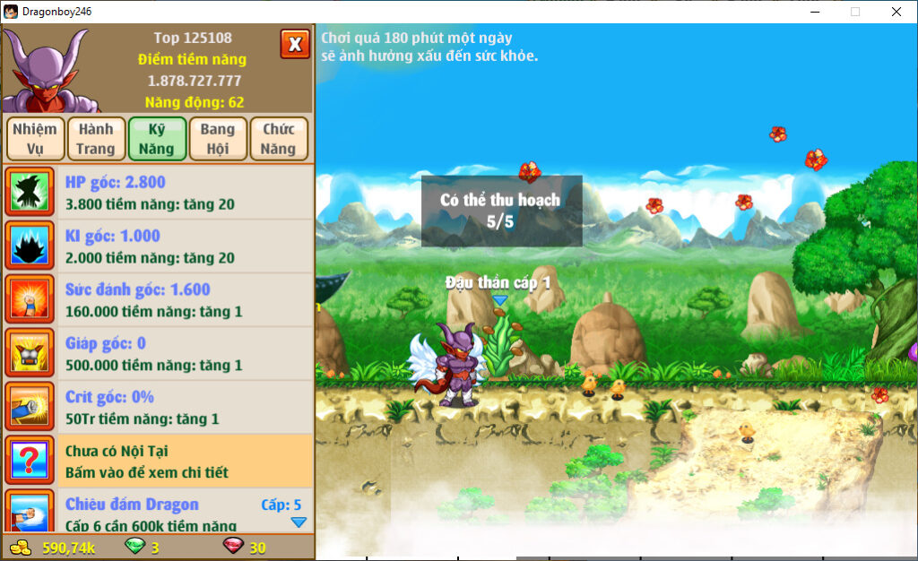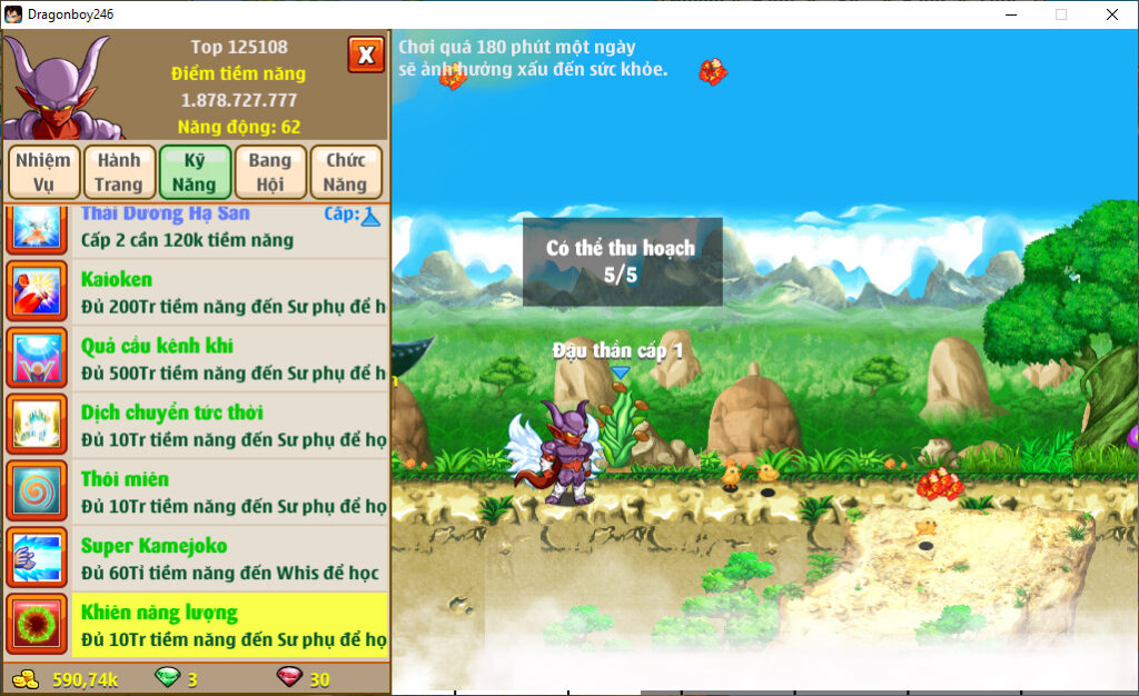 - Ms 4605 (tặng kèm 40 ngọc) – Trái đất 4ti5 dt 482tr, atomic c2, có btai, pet #pikachu, thùng rác, ct goku SSJ3, ct goku, ct apk 13, frost 2, skill 77711034