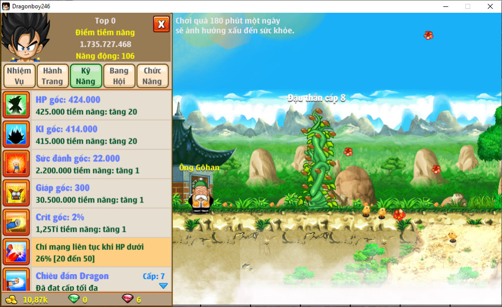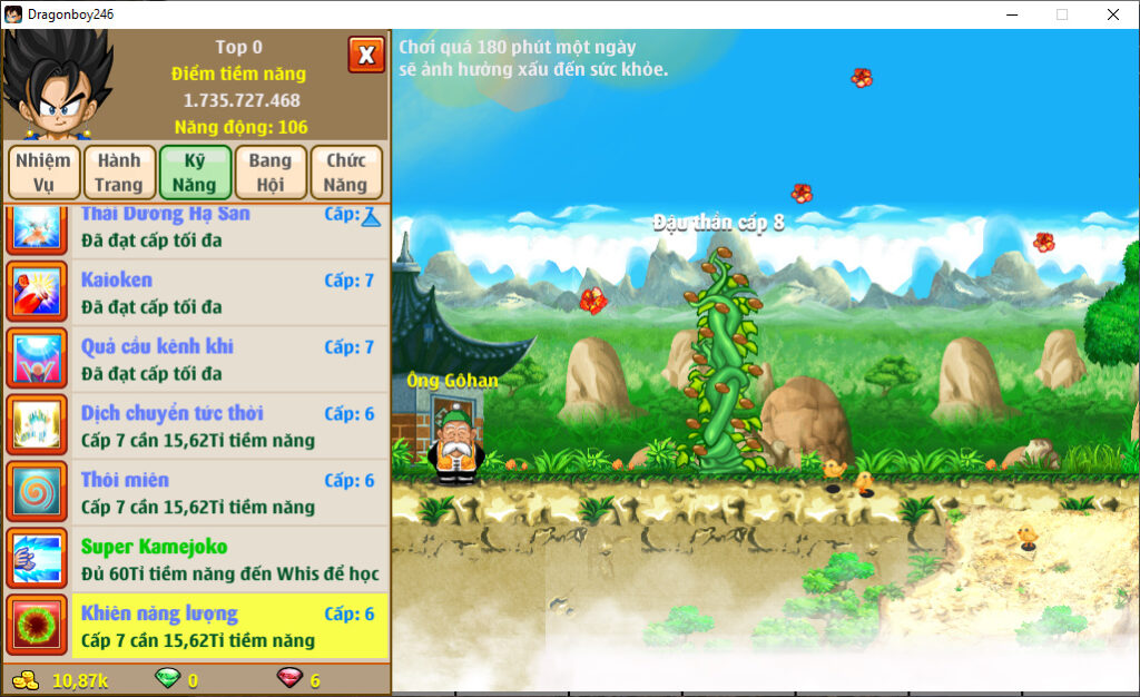 - Ms 6410 (rao thuê cả đồ + sách + ngọc) – Trái đất id #kyphuong89, dctt 146%, có ct kháng tdhs, x2 thỏ, găng ts 5s + g hd 4s, btc2 9% sd, đã ước 10 bộ 1s + cmg 13, đã kik ssn LV2, phụ kiện đầy đủ