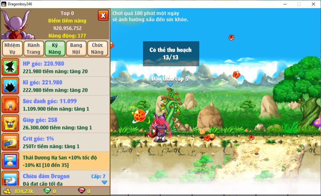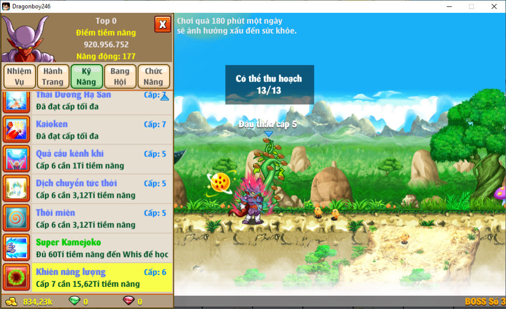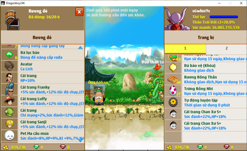 [SV2] (đã bán) Ms 6548 – Trái đất 16ti dt 2ti3, kame kaioken, ct janemba, x2 chan xư, apk 13, ct luffy, sanji, Franky, …