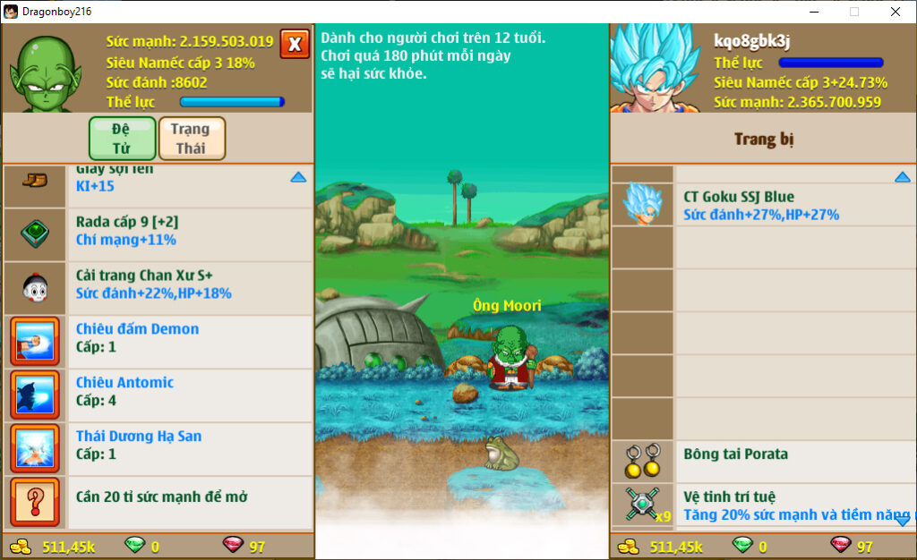 - Ms 2500 (kèm đồ đệ 7s) – Nameck chơi ki max vip set picolo 7s, giáp 7s ki, giày hd 7s, đệ max 575k ki