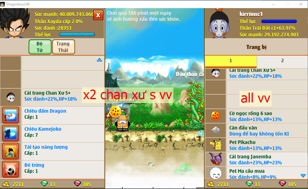 - Ms 6547 – Trái đất 16ti dt 2ti, atomic 7 kaioken, ct goku ssj blue, janemba, chan xư, apk 19, x2 apk 13, … cờ nro 6s, pet pikachu
