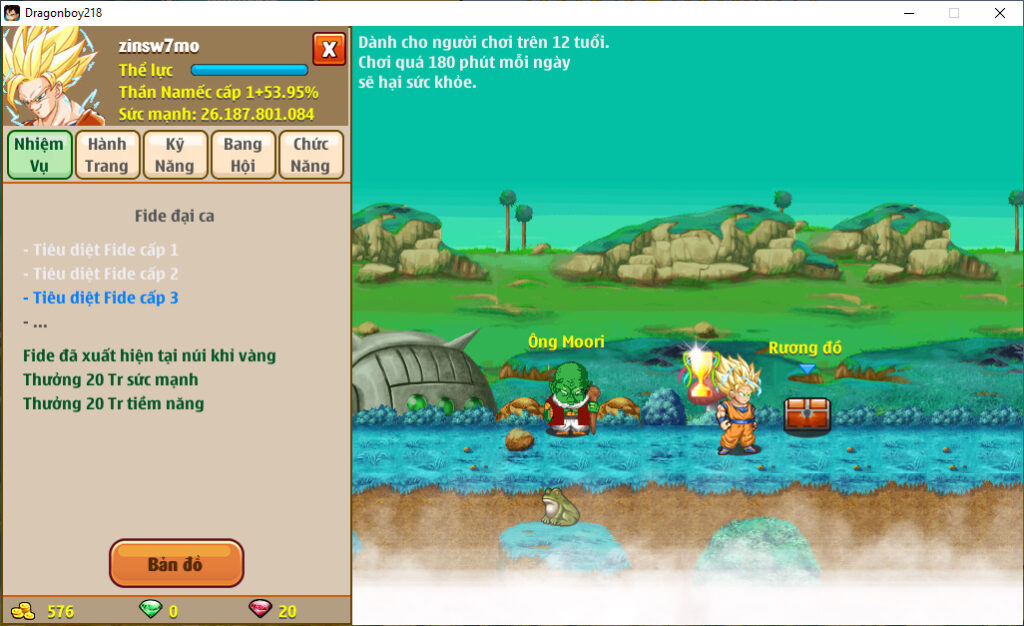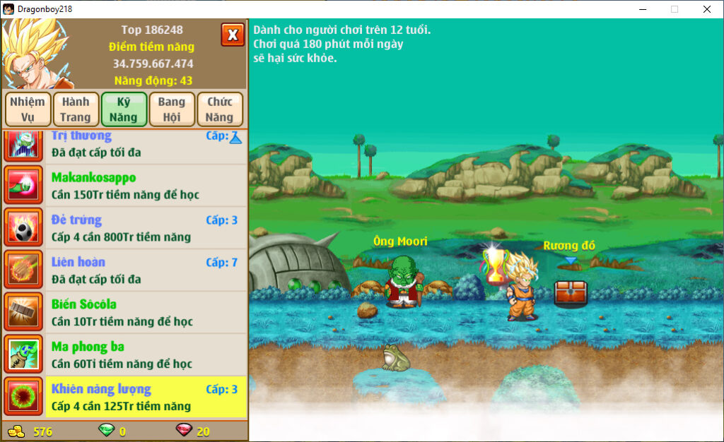 [SV2] Ms 6615 – Namec 26ti dt 20ti, atm ttnl trứng, LH 12%, x2 ct goku ssj 2, chan xư s, cúp, …