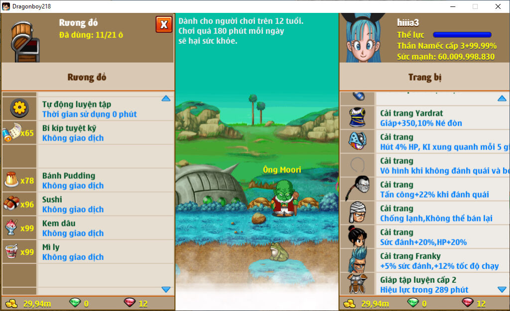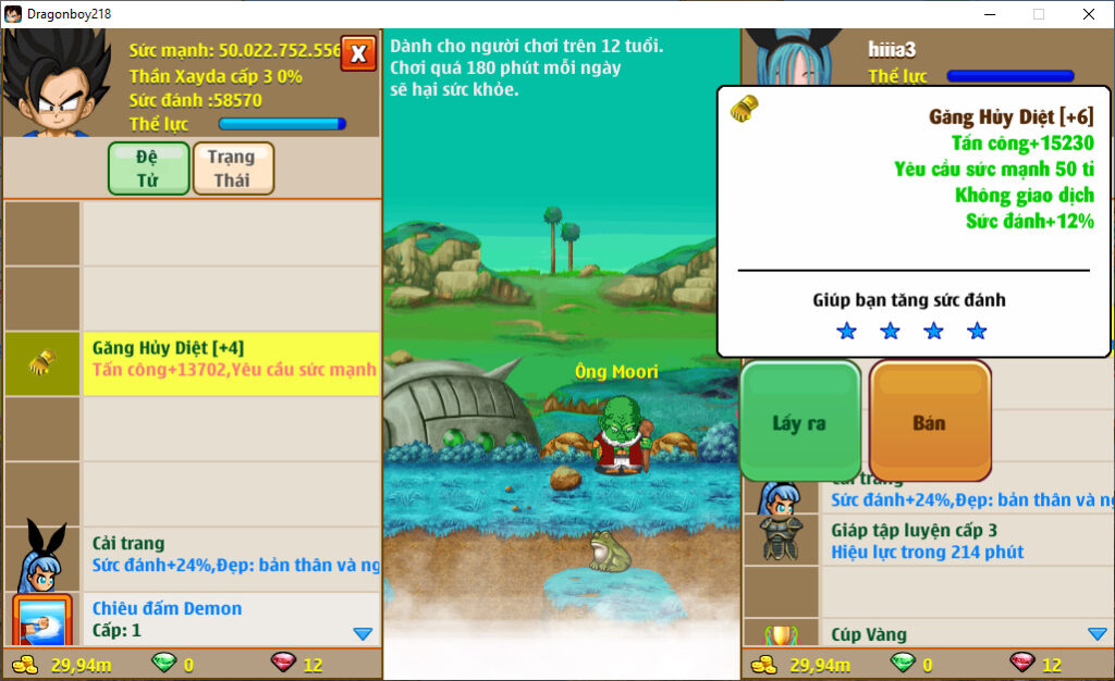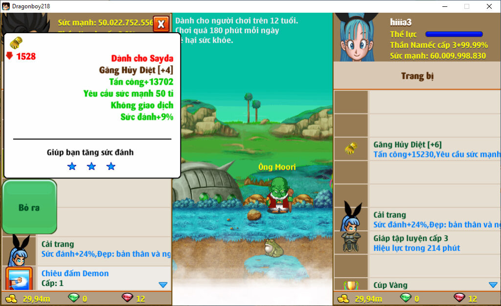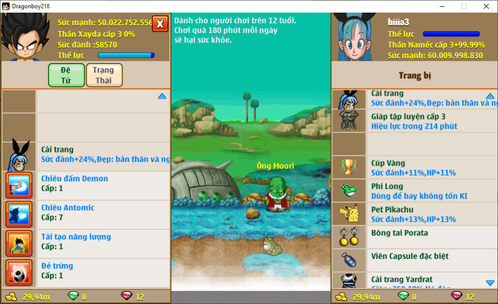 - Ms 6617 – Namec up vàng NTV 172%, 20ti sm dt 11ti9, msk ttnl, ct goku ssj3, ct goku, chan xư s, cúp + thùng rác
