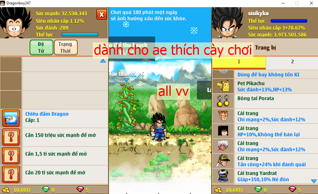 [SV2] Ms 6629 – Dành cho ae thích cày chơi lại nek, Trái đất 3ti9 dt 32tr sm, có bông tai, pet pikachu, yadrat, ct apk 13, số 2, số 3