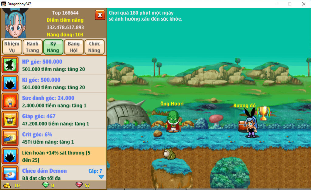 - Ms 6617 – Namec up vàng NTV 172%, 20ti sm dt 11ti9, msk ttnl, ct goku ssj3, ct goku, chan xư s, cúp + thùng rác