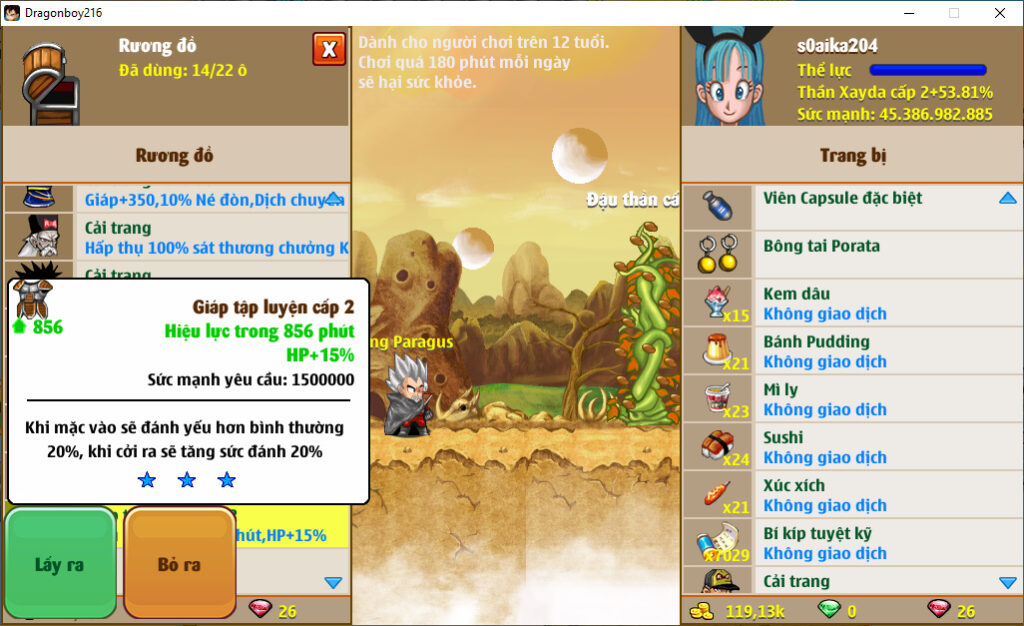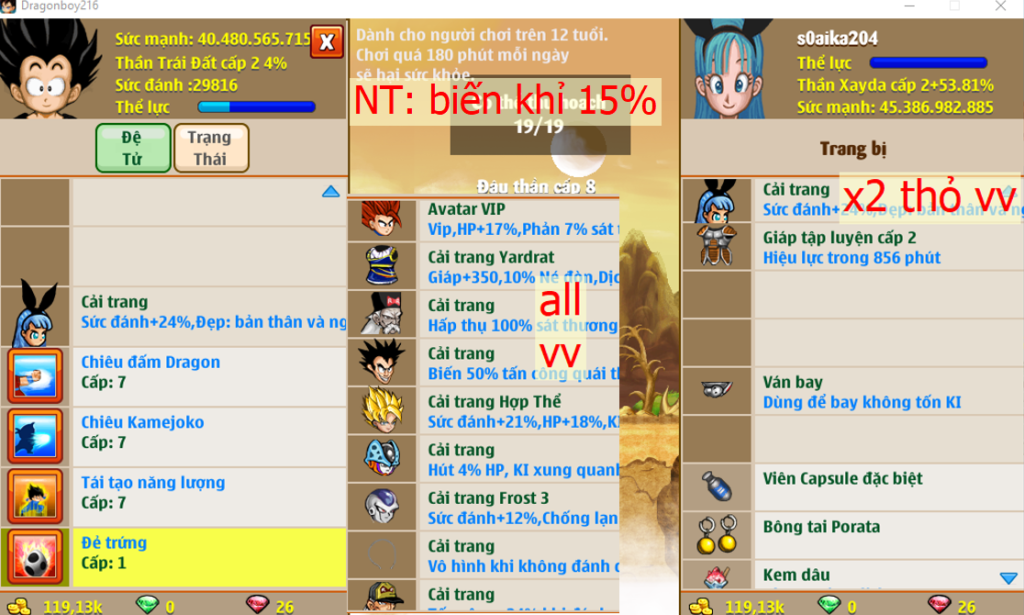 - Ms 6532 (kèm sách 10% HP + cả đồ) – Ms Xayda vip id #nhoxmon2k, giáp 7s, w ts c8 7s + w hd 7s, khiên 54 + ct pikkon ngon, bct2 8% HP, x2 nón trâu, phụ kiện đầy đủ ….