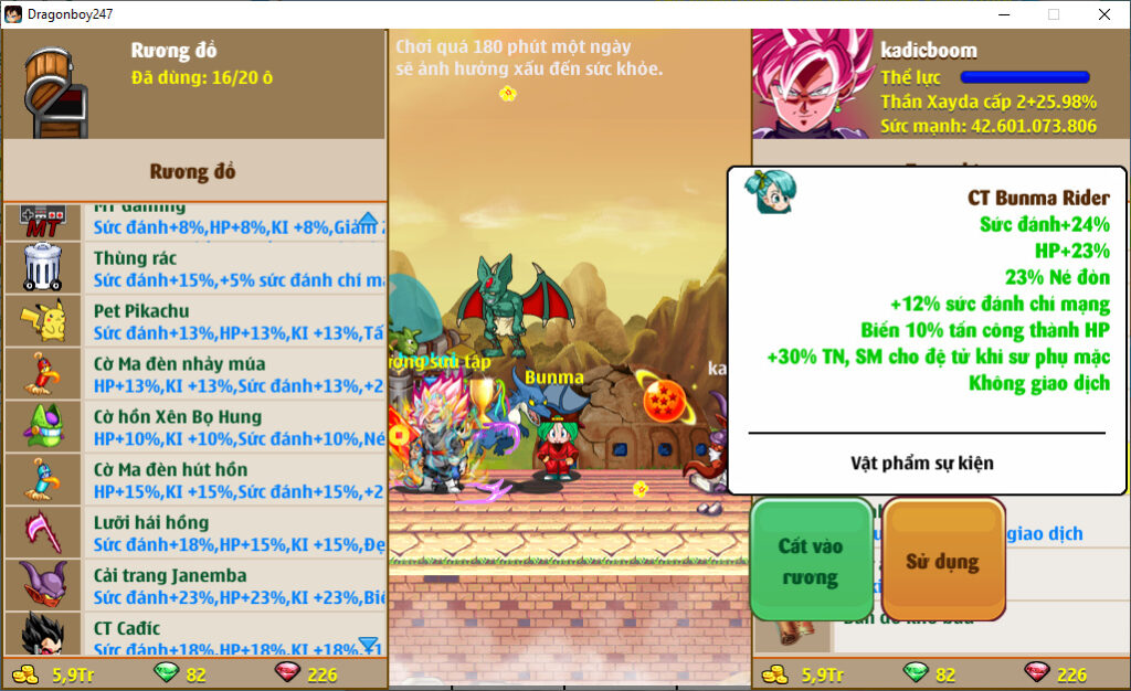 - Ms 6532 (kèm sách 10% HP + cả đồ) – Ms Xayda vip id #nhoxmon2k, giáp 7s, w ts c8 7s + w hd 7s, khiên 54 + ct pikkon ngon, bct2 8% HP, x2 nón trâu, phụ kiện đầy đủ ….