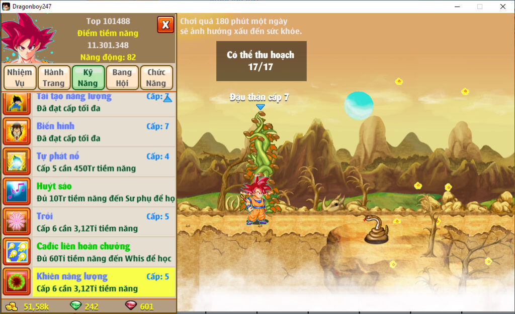 [SV2] Ms 6638 (kèm ngọc + đồ) – Xayda 4 món kkr (thiếu w), có 1 w kaio nappa