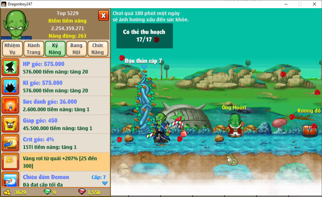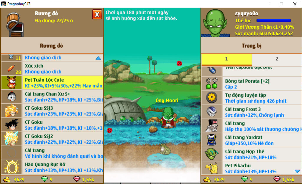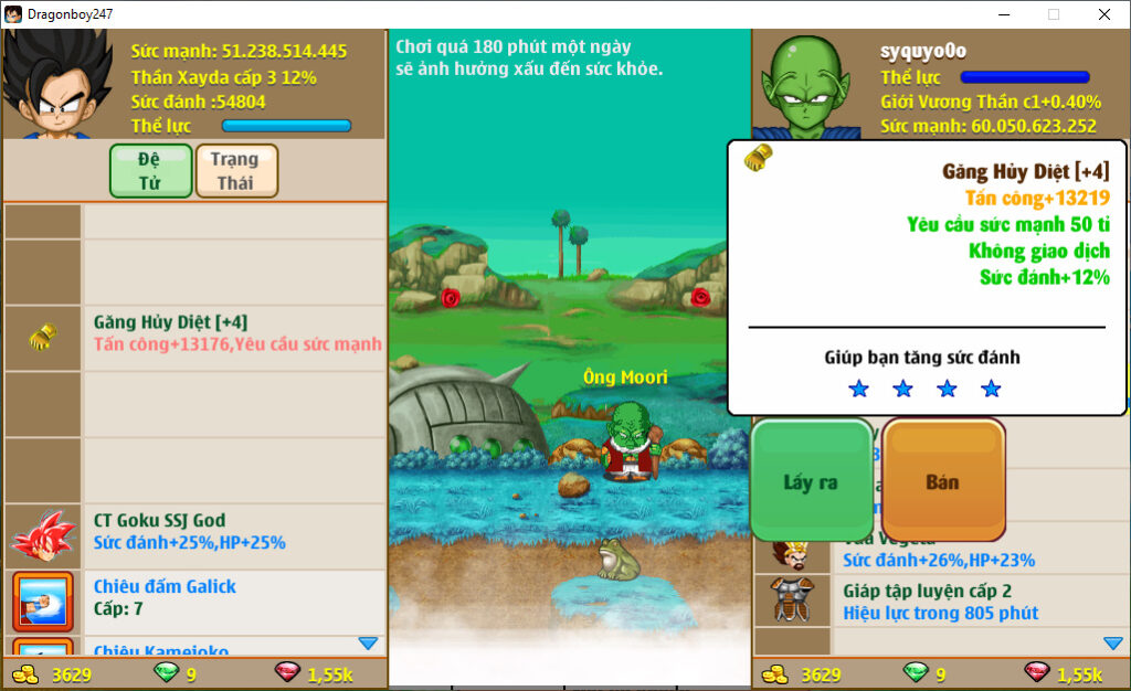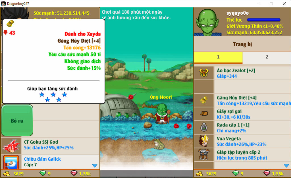 - Ms 6640 (kèm 700 ngọc) – Nameck 77ti dt 37ti, atomic ttnl trứng, LH 20%, ct x3x4, cadic ssj M, goku ssj3, frost3, …