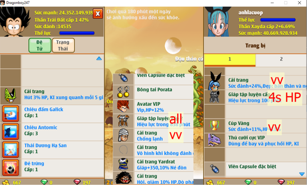 - Ms 6638 (kèm ngọc + đồ) – Xayda 4 món kkr (thiếu w), có 1 w kaio nappa, nhiều cải trang, phụ kiện đầy đủ