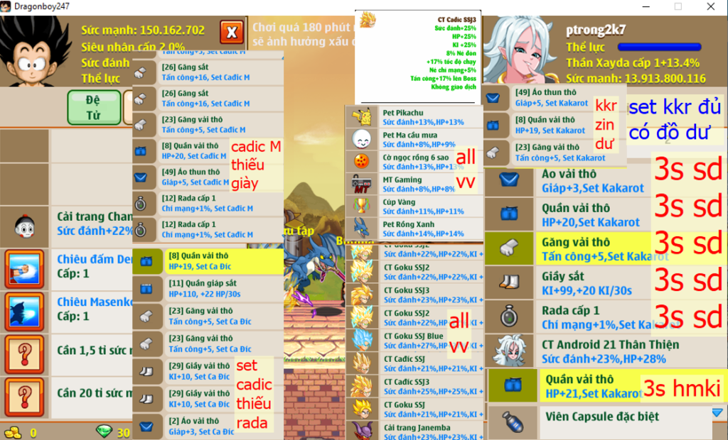 - Ms 6221 – Xayda 66ti dt 66ti, kame ttnl khỉ, khiên 49%, btc2 8% sd, x2 quần thiên sứ 6s HP, glt 6s HP + glt c3, găng hd c4 3s sd, áo ts zin, ct áo trắng hoa vv, ct poc bikini vv, ct cadic vv, buma tóc xanh, phụ kiện đầy đủ