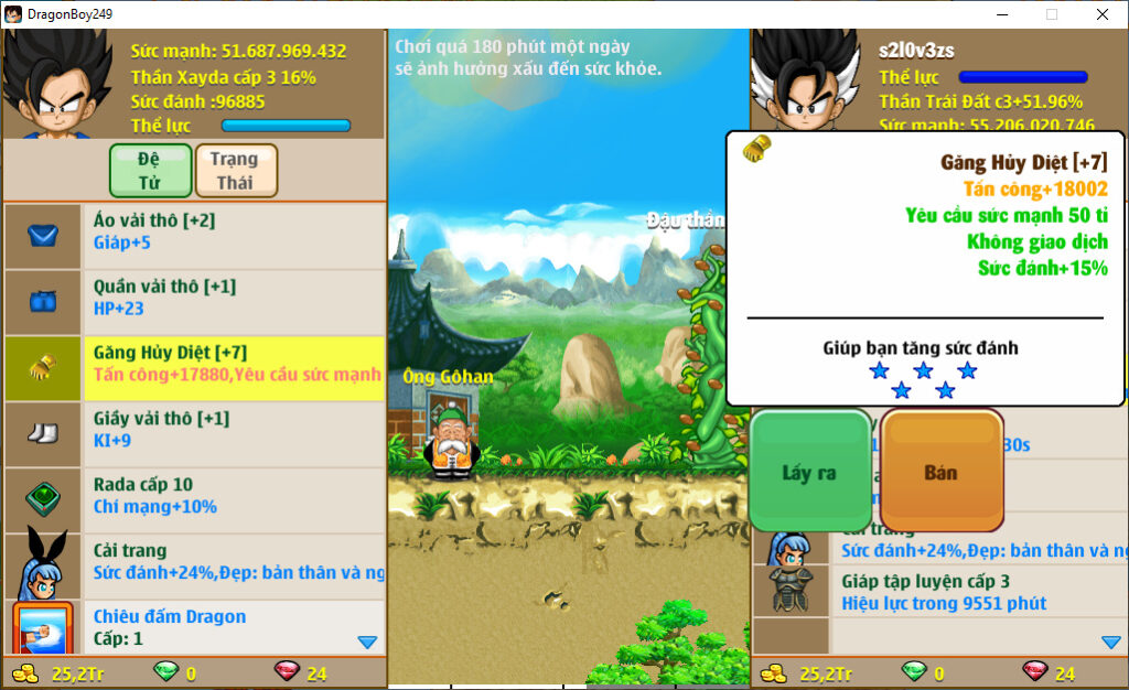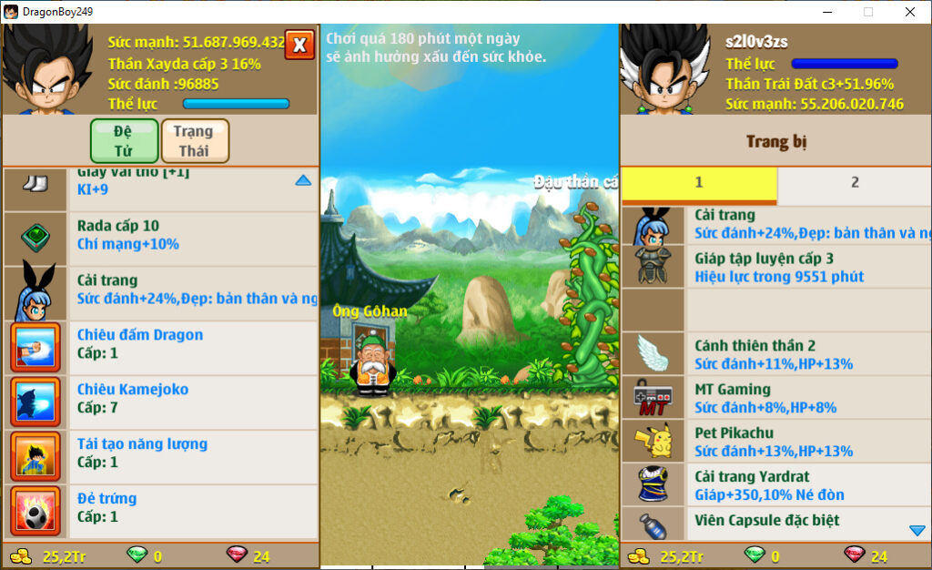 - Ms 6548 – Trái đất 16ti dt 2ti3, kame kaioken, ct janemba, x2 chan xư, apk 13, ct luffy, sanji, Franky, …